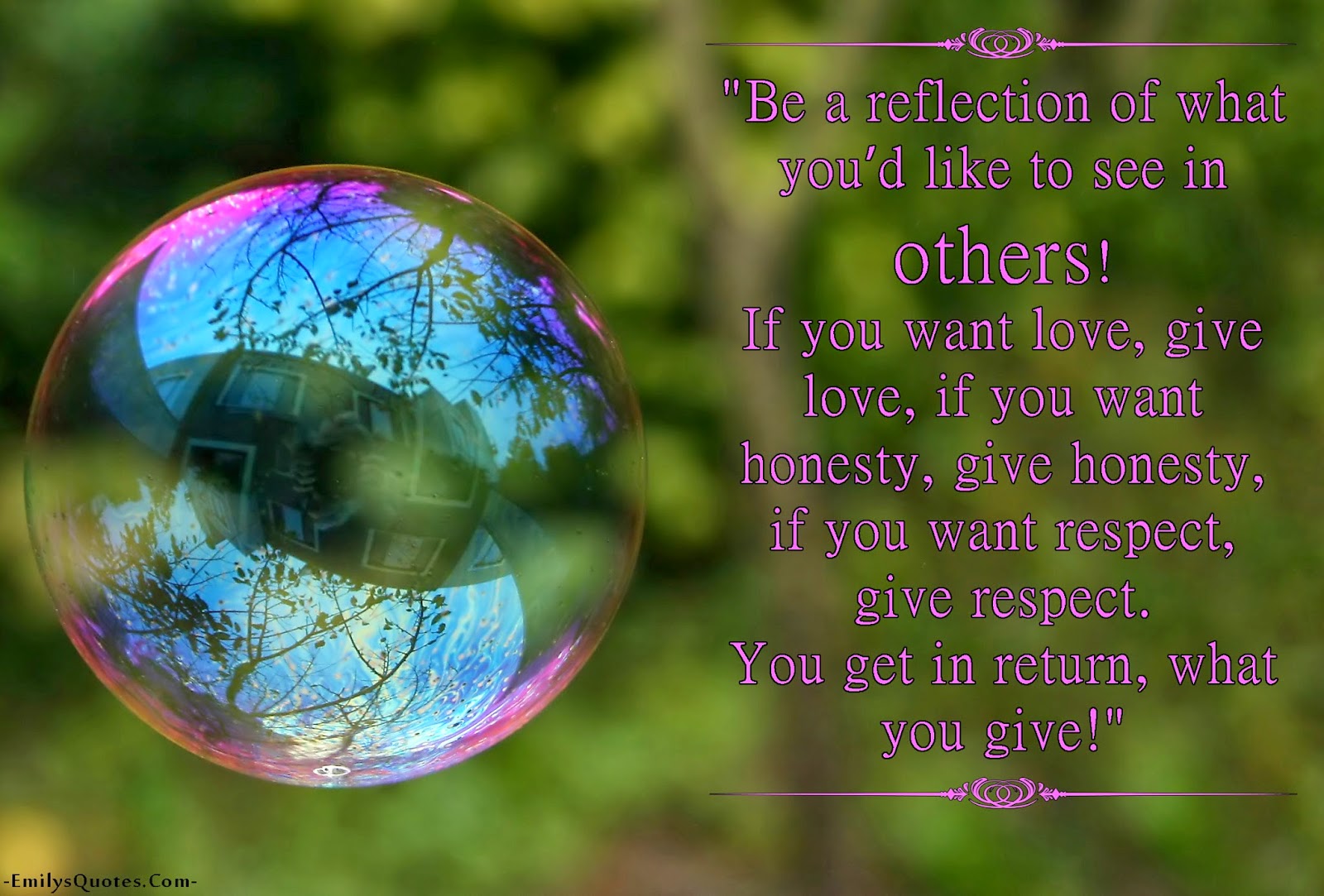 Be a reflection of what you’d like to see in others! If you want love, give love, if you want honesty, give honesty, if you want respect, give respect. You get in return, what you give